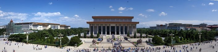 Der Platz des Himmlischen Friedens (Tiananmen-Platz) im Zentrum Pekings ist die Ruhestätte von Mao Zedong. Sein mumifizierter Leichnam befindet sich in einem gewaltigen Museum an der Südseite des Platzes.